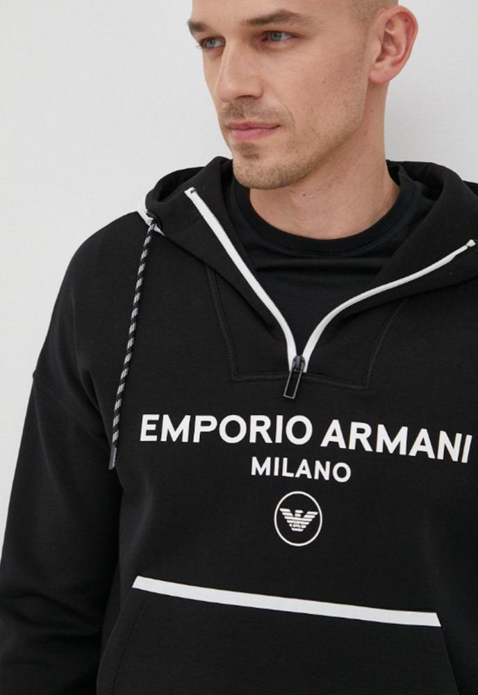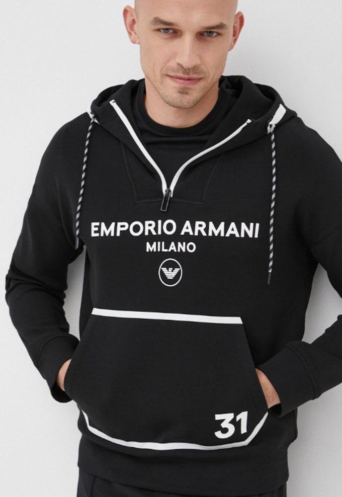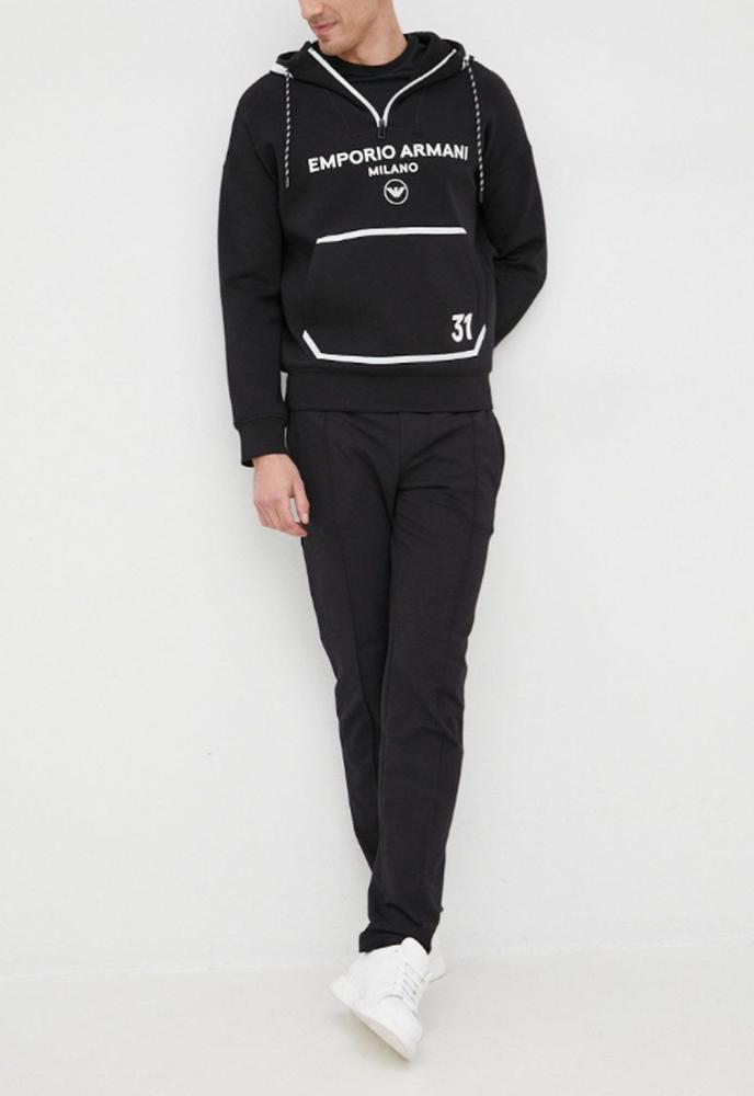 엠포리오아르마니 남성 로고 프린트 후드 자크 티셔츠 블랙 EMPORIO ARMANI (22040014863833)