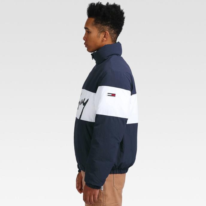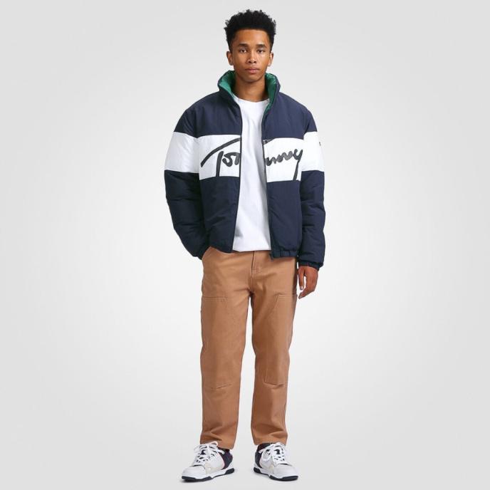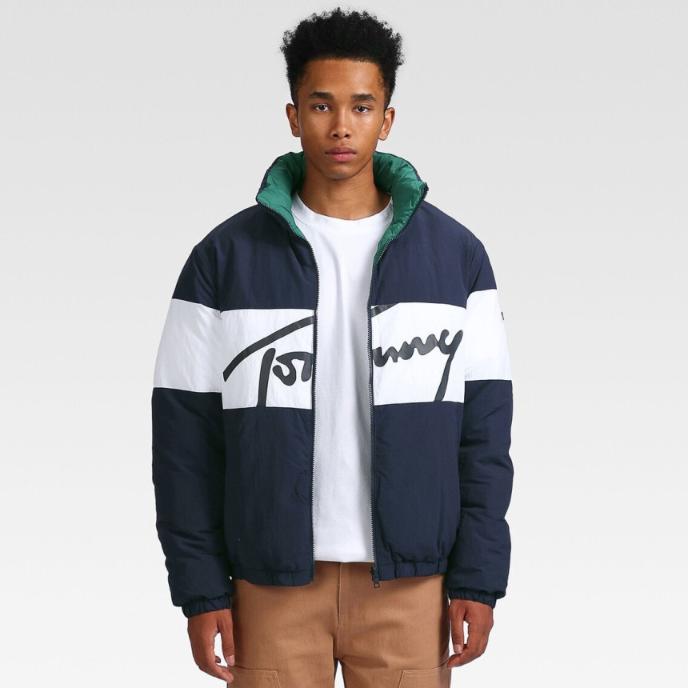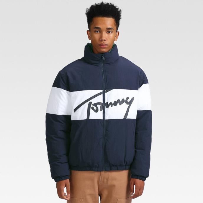 TOMMY HILFIGER 타미진스 양면 푸퍼 시그니처 패딩 네이비 그린