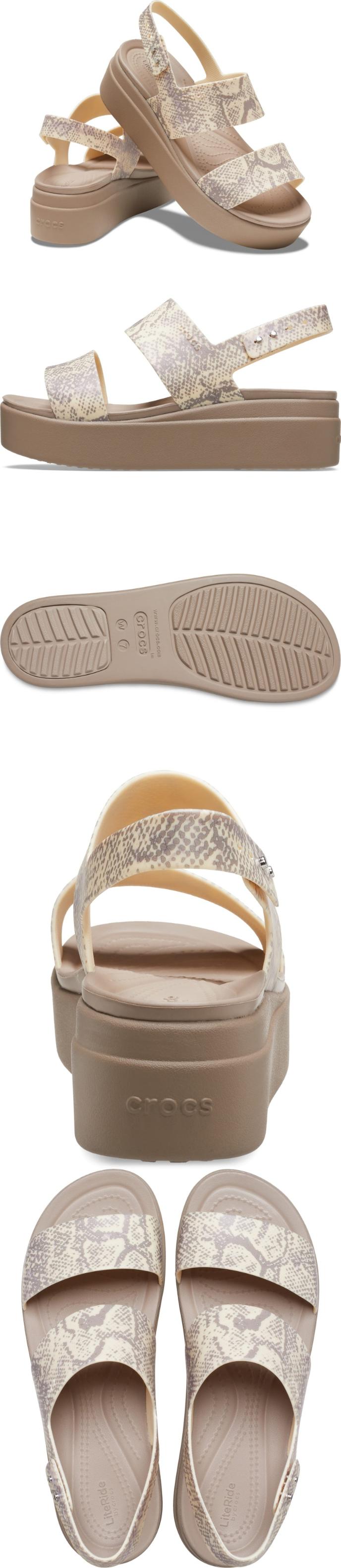 거의 모든 것과 잘 어울리는 현대적인 룩을 위해 디자인된 클래식 Crocs 브루클린 버클 로우 웨지 힐을 신어보세요.