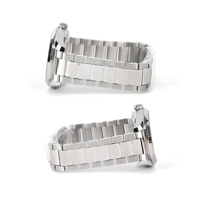 스틸 재질의 40mm 사이즈의 대칭을 이루는 케이스와 일체형 브레이슬릿이 탑재되어