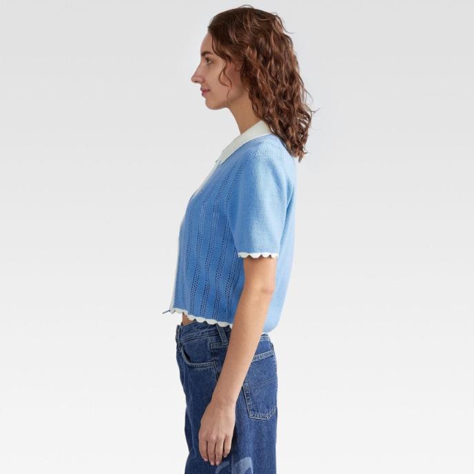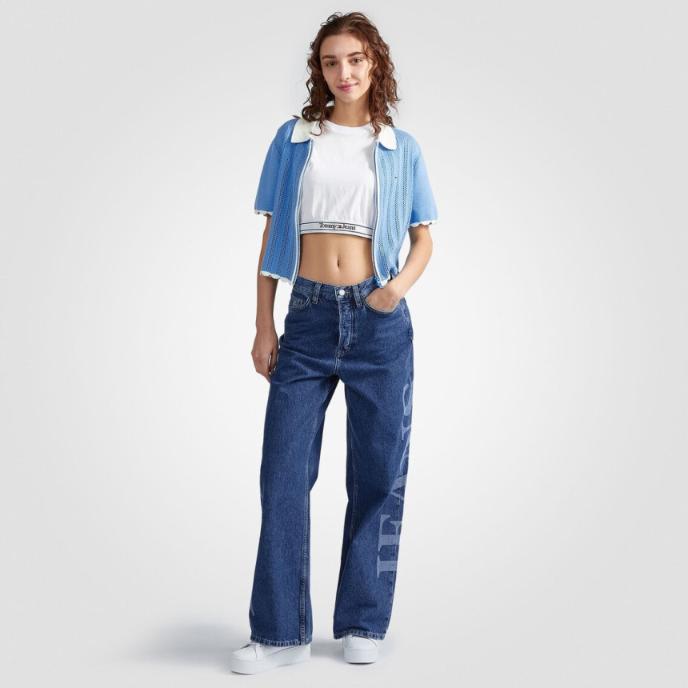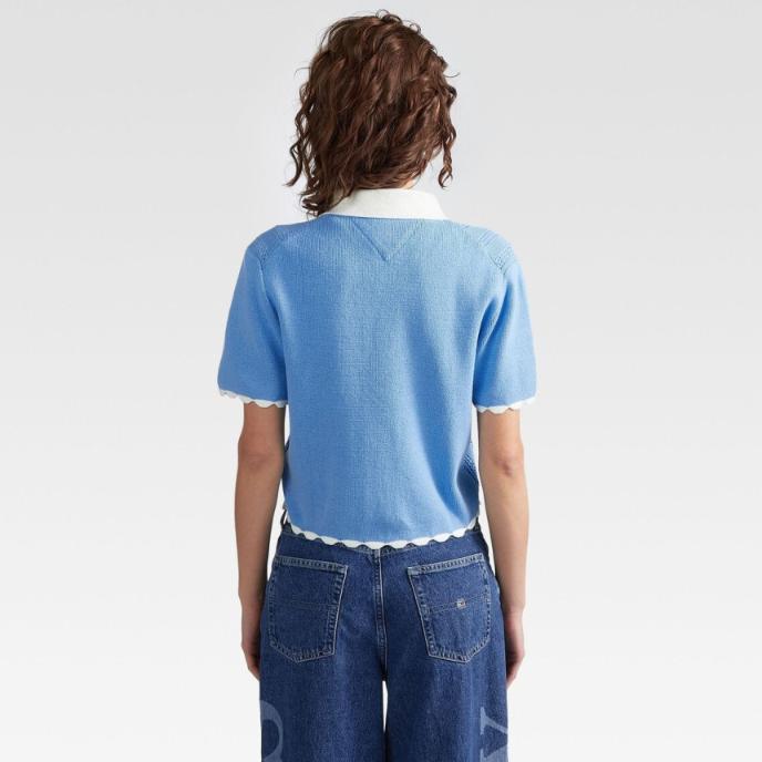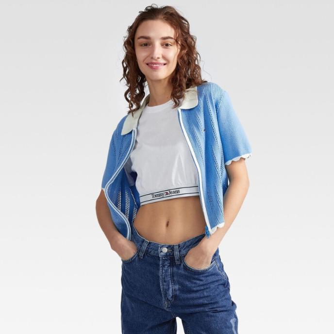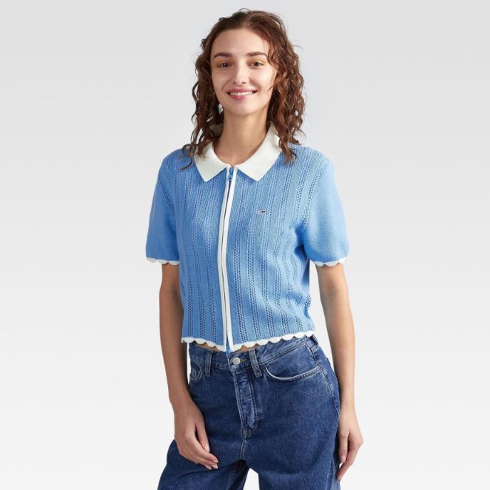 TOMMY HILFIGER 타미진스 여성 포인텔 집업 반팔 카라 가디건 블루
