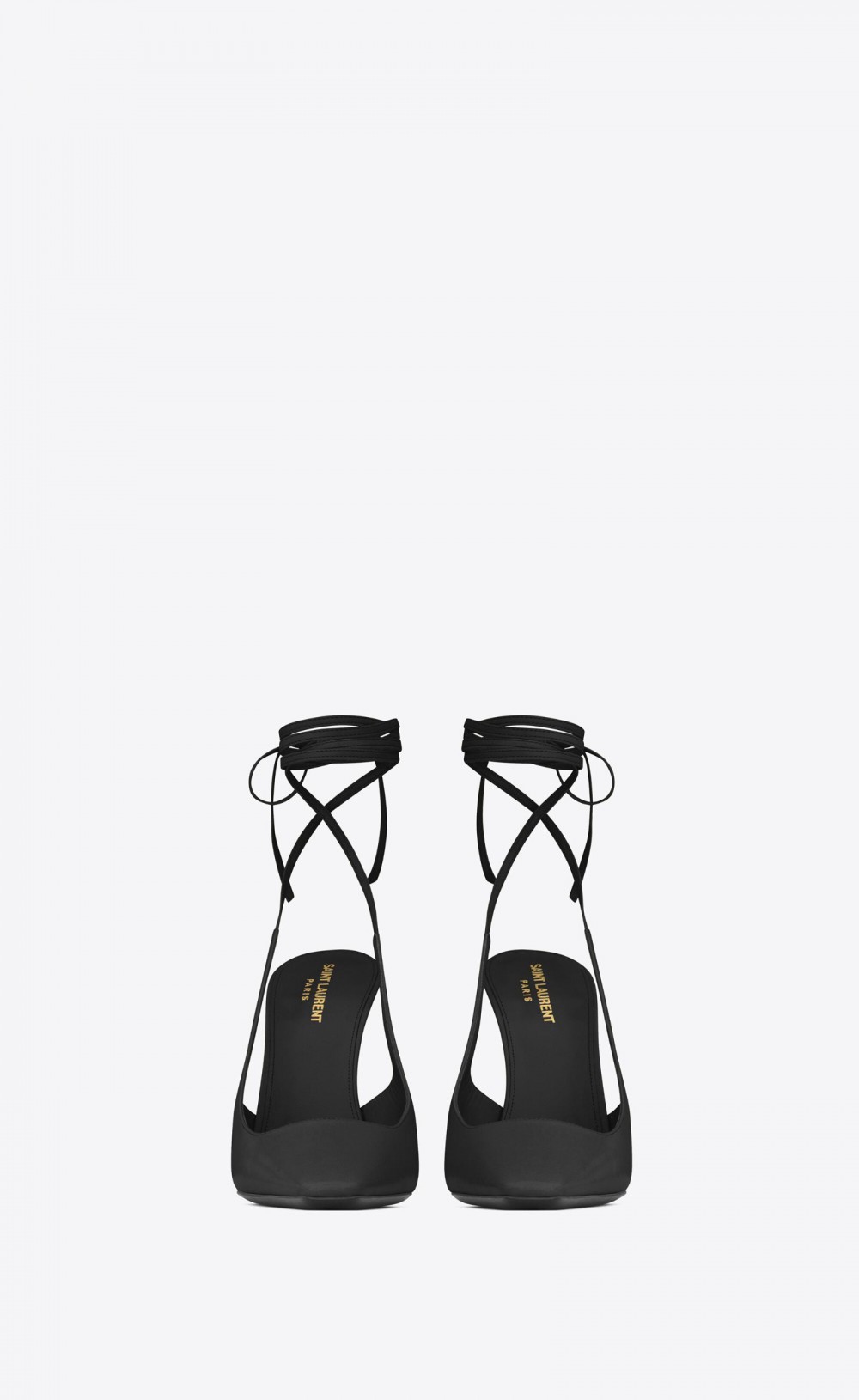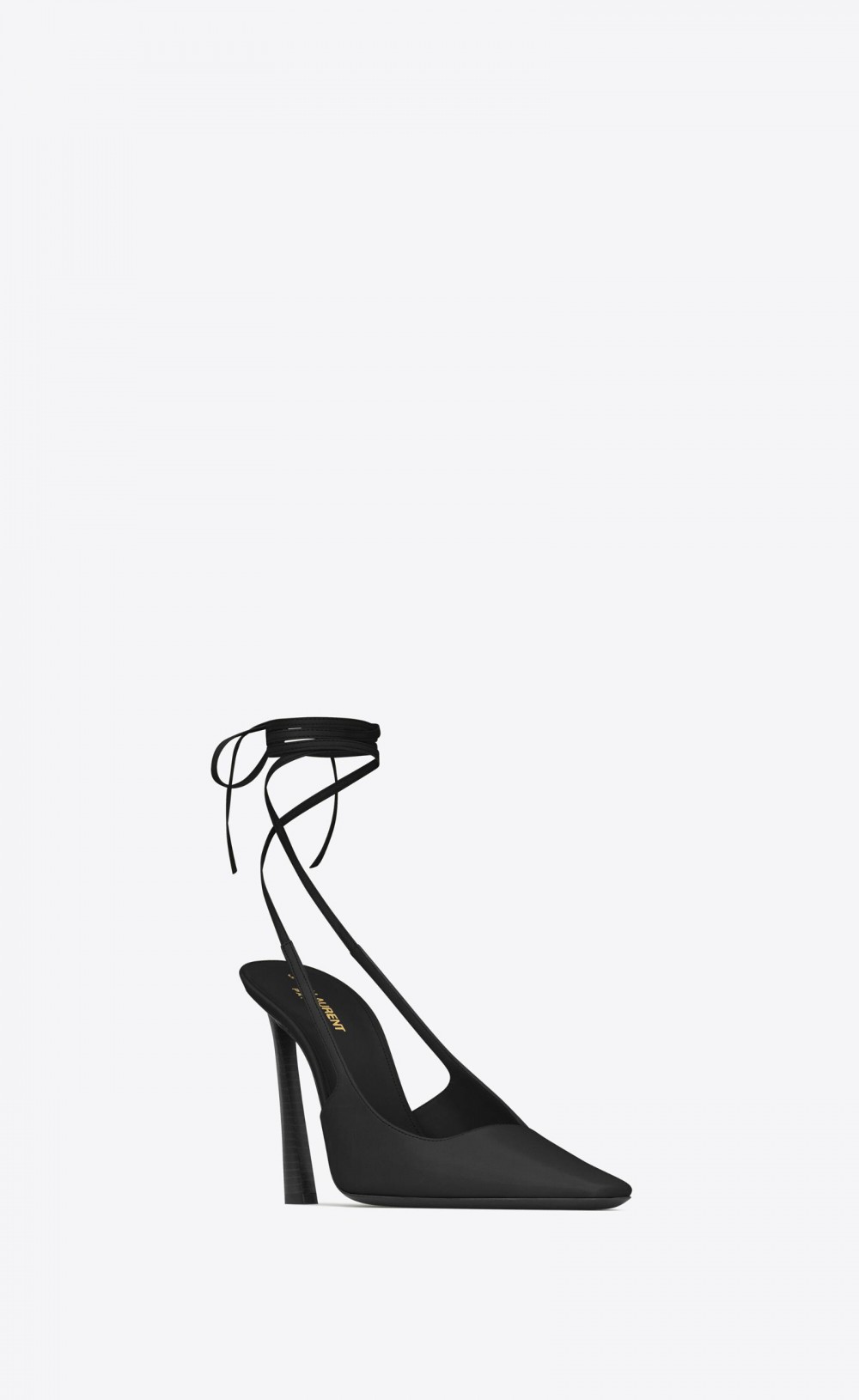 SLINGBACK PUMPS WITH SQUARE-CUT VAMP, LONG SQUARED-TOE, FLARED HEEL AND WRAPAROUND ANKLE TIES.