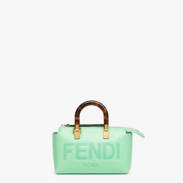 <h3>제품 설명</h3> Iconic mini By The Way Boston bag made of green leather with heat-stamped FENDI ROMA lettering and rigid tortoiseshell-effect plexiglass handles. Zip fastening. Featuring an interior lined in FF fabric with a zip pocket and gold-finish metalware. The bag can be carried by hand with the handles, or worn either on the shoulder or cross-body with the adjustable, detachable shoulder strap. Made in Italy