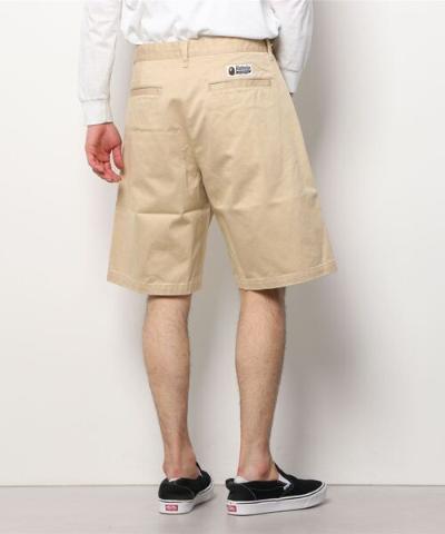 BATHING APE 베이프 원포인트 와이드핏 치노 반바지 베이지