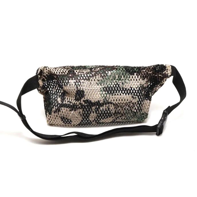 ・ 브랜드 아카이브의 허리 가방에 근거하여 두꺼운 원사로 편직된 폴리에스텔 메쉬를 사용한 허리 가방
