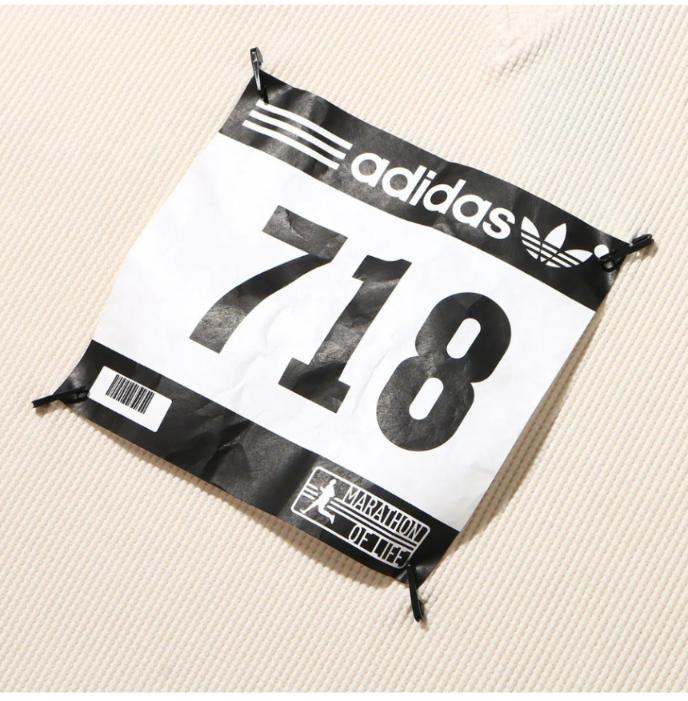 블루 버전은 사치의 렌즈를 통해 아디다스의 역사적 순간의 확대 버전입니다.